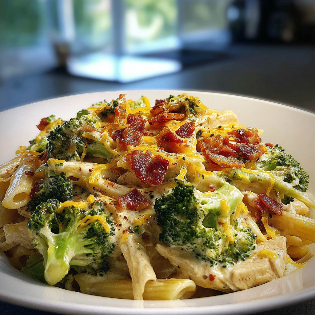 Irresistible Cheesy Bacon Chicken Pasta with Broccoli