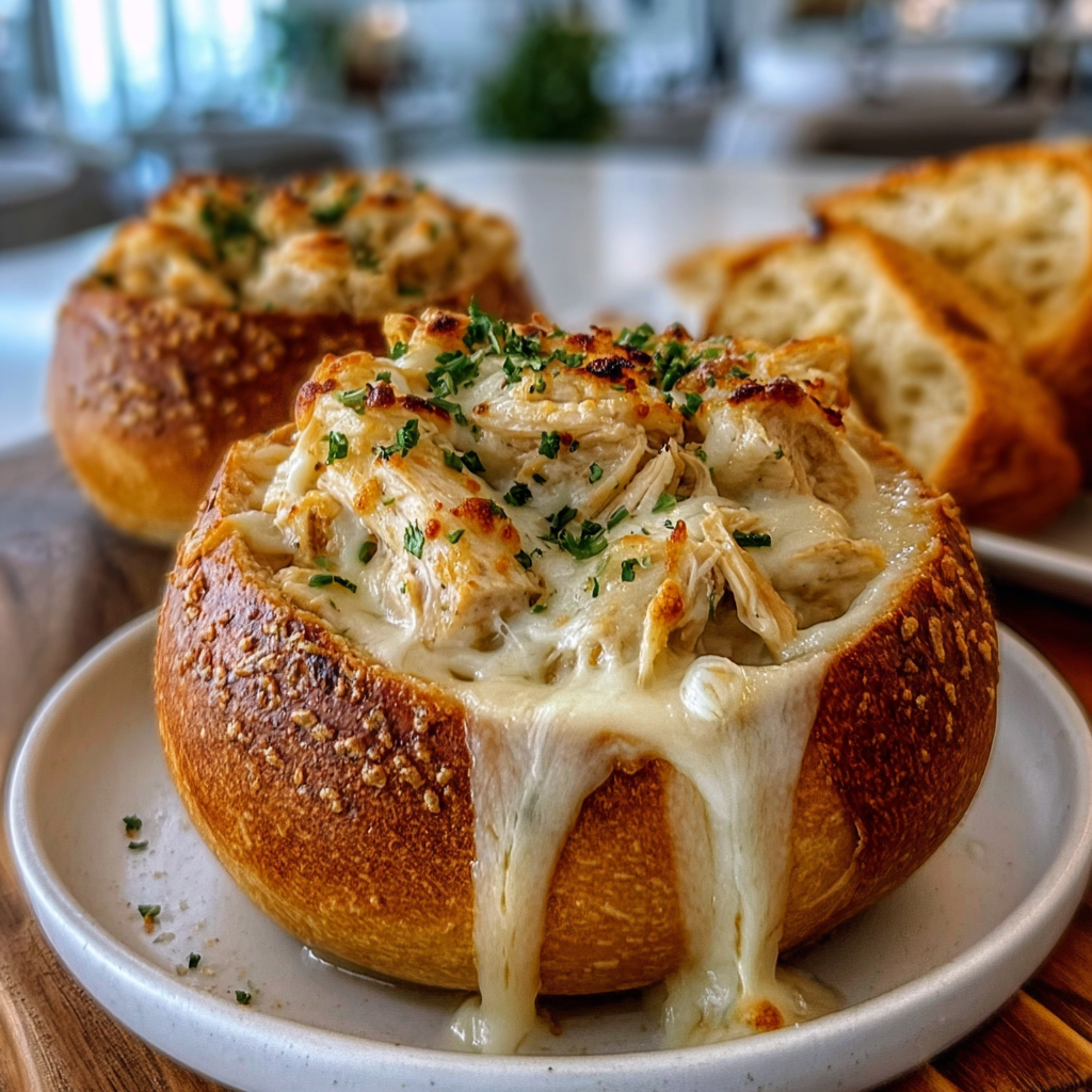 Chicken Alfredo Garlic Bread Bowls – Cheesy, Creamy