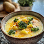 Warm up with this comforting Creamy Potato Broccoli Cheddar Soup, featuring tender potatoes and vibrant broccoli enveloped in a rich, cheesy broth.