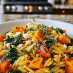 Deliciously Creamy Pumpkin Orzo with Spinach and Feta is the perfect fall comfort dish. This creamy pasta combines the rich flavors of pumpkin, fresh spinach, and tangy feta cheese, creating a warm and inviting meal that satisfies your taste buds. Ideal for family dinners or cozy weeknight meals, this recipe captures the essence of autumn in every bite.