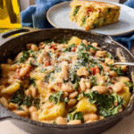 Savor the rich flavors of this creamy Tuscan white bean skillet, featuring tender beans, fresh spinach, and sun-dried tomatoes in a luscious sauce. Perfect for quick weeknight dinners!