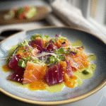 This Spicy Wasabi Sashimi Salad combines fresh sashimi-grade fish with crunchy vegetables, drizzled in a zesty wasabi dressing for a vibrant flavor experience.