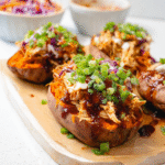BBQ Chicken Stuffed Sweet Potatoes are a deliciously easy and nutritious dish, combining tender chicken in BBQ sauce with sweet, fluffy sweet potatoes for a satisfying meal.