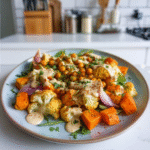 To keep your Glow Bowl Roasted Veggie Tahini Yogurt Sauce fresh, store leftovers in an airtight container in the refrigerator. The roasted vegetables will last about three days while maintaining their flavor and texture. You can reheat them in the oven or enjoy them cold in salads or wraps.