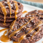 Transfer them onto plates (if they last that long) and get ready for pure bliss! Enjoy those chewy centers filled with melted chocolate goodness paired perfectly with salty caramel.