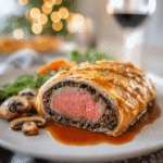 Indulge in this elegant Beef Wellington, featuring tender beef enveloped in a rich mushroom duxelles and flaky pastry. Perfect for impressing guests or celebrating special moments!