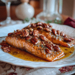 Maple Glazed Salmon with Pecans is a delightful dish that features tender, flaky salmon drizzled in a sweet and savory glaze, topped with crunchy toasted pecans for an unforgettable meal.