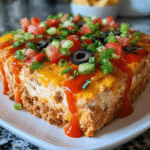 Spicy Ranch Taco Dip is the ultimate crowd-pleaser, combining creamy ranch and zesty taco flavors in one irresistible dish. Perfect for game nights or casual gatherings, this dip pairs beautifully with crunchy tortilla chips or fresh veggie sticks. Easy to prepare and packed with flavor, it’s sure to be a hit at any event. Just mix, chill, and serve for a delicious appetizer that will keep your guests coming back for more!