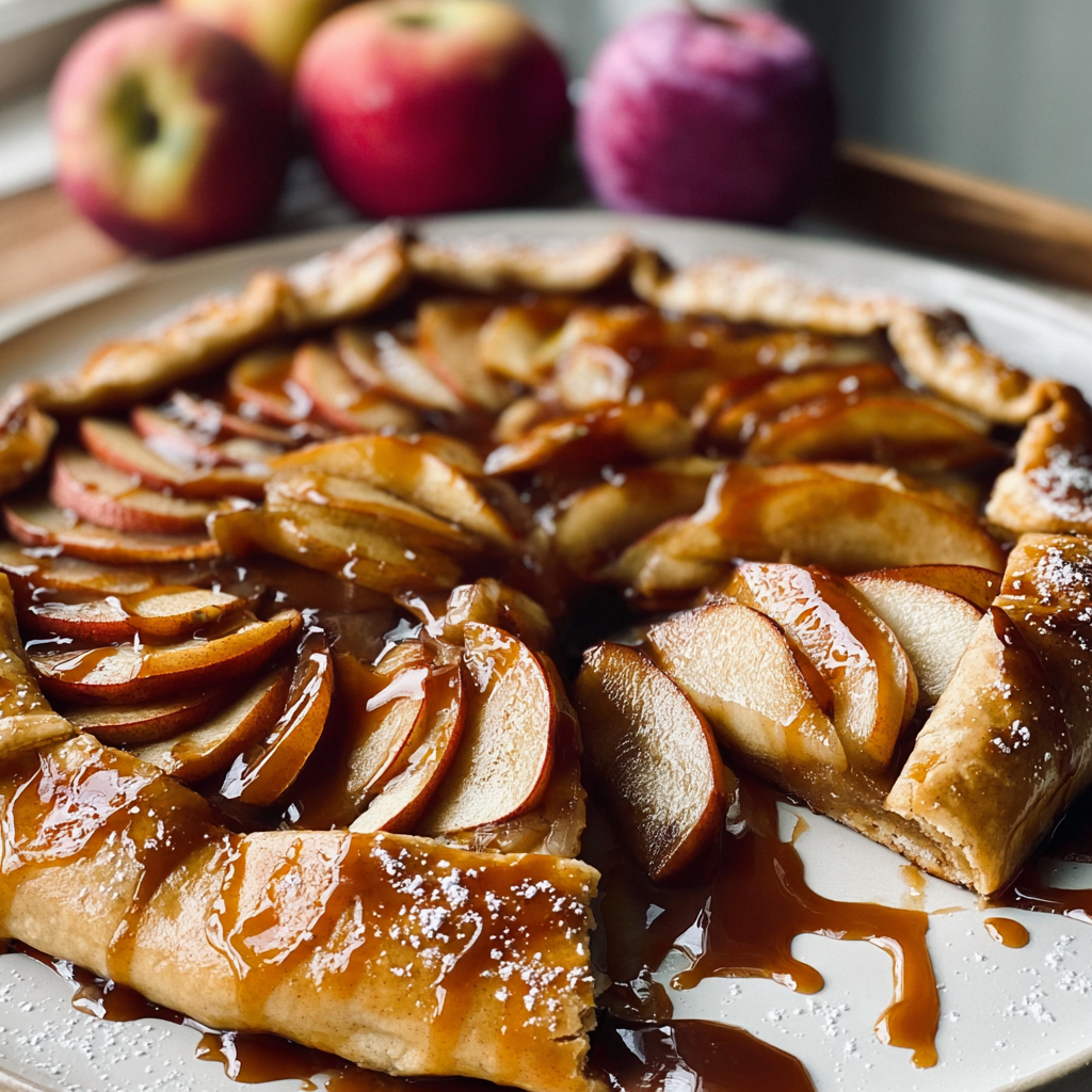 Delight your guests with this Salted Caramel Apple Galette, a rustic dessert featuring tender apples wrapped in a flaky crust and drizzled with rich salted caramel.