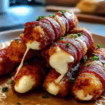 Nashville Hot Bacon Wrapped Mozzarella Sticks deliver a crispy, spicy kick with gooey cheese, making them an irresistible snack for any occasion. Perfect for game days or late-night cravings!