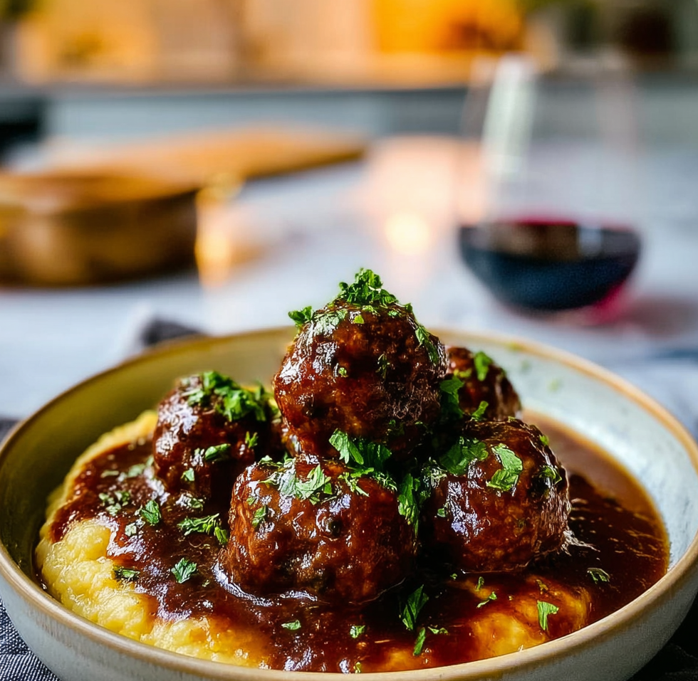 Ultimate Tender Red Wine Braised Meatballs Recipe